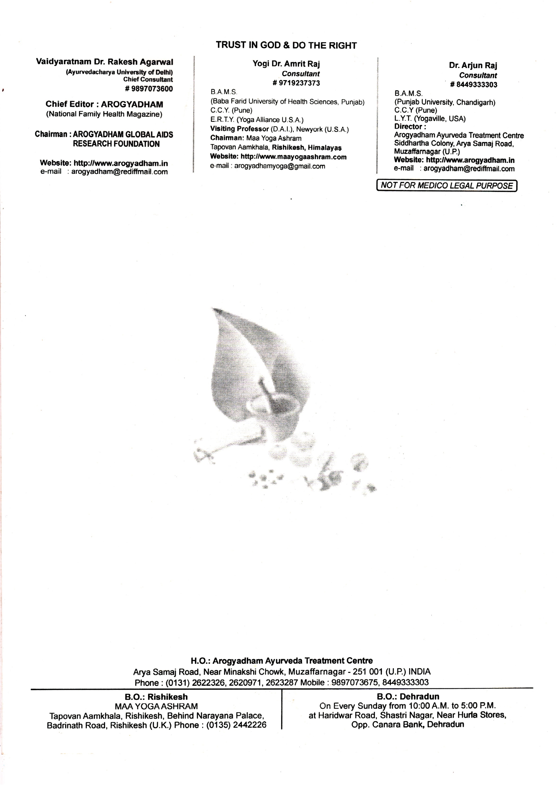 Sexologist, Arogyadham Ayurveda Treatment Centre, Muzaffarnagar December, 1985 - Present