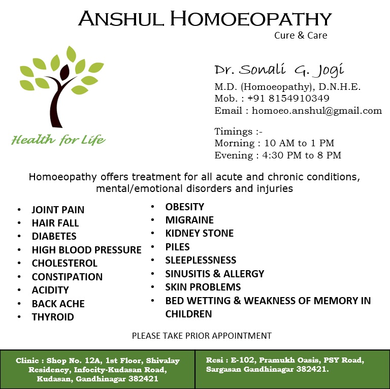 MD Homoeopath, Anshul Homoeopathy, Gandhinagar 07, 2016 - Present