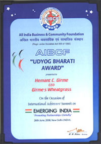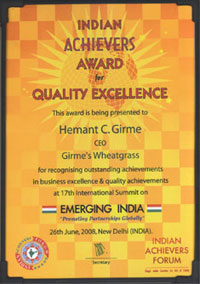 - Mr Hemant Girme, CEO- Girmes Wheatgrass, receiving the Award of National Excellence by H. E. The Governor of Sikkim